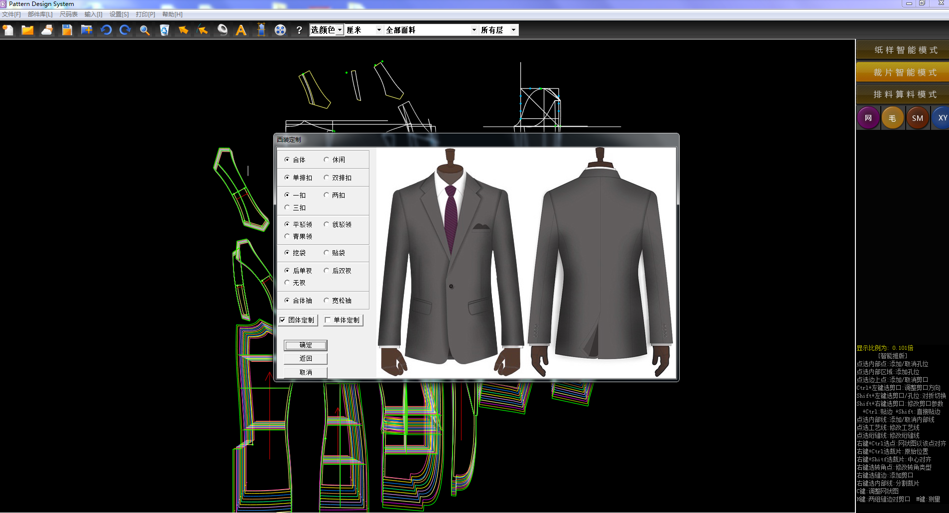 博克定制服裝CAD系統,針對定制服裝行業研發,可以實現快速自動改版和版型組合,實現真正的一人一版、一衣一款。通過系統強大的參數化設計功能,對基準樣版進行部件化建模,與智能數據中心相結合,形成強大的款式庫與部件庫,根據輸入的量位數據和款式部件自動生成對應的樣版和排料,與博克MTM系統及博克智能數據中心結合起來,可以形成完整的個性化定制解決方案。