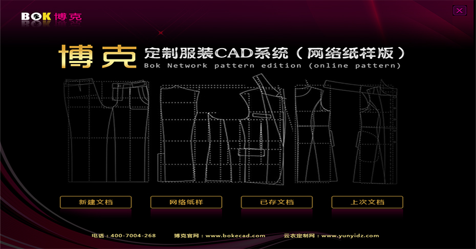 博克定制服裝CAD系統(網絡紙樣版)是博克公司針對小型或個人推出的一款在線打印CAD系統,該系統通過指定路徑下載安裝后即可使用。 系統功能包括:單體定制、團體定制、打板、放碼、超級排料、輸出PLT打印、打開DXF、PLT格式文件、保存為裁床CUT格式、輸出A4縮略圖等功能。