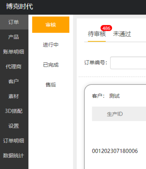 系統后臺功能強大,包括訂單管理、產品管理、賬單明細、代理商管理、客戶管理、素材、
